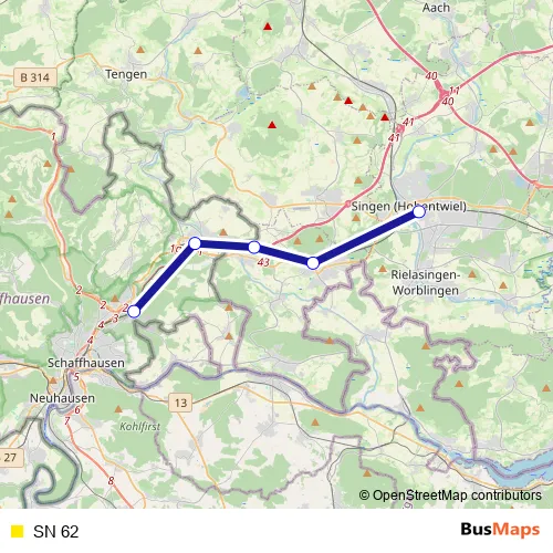 See why over 2 million users trust and consider busmaps.com as the best public transport website. busmaps gives you Thayngen Rail Services suggested routes, real-time bus tracker, line route maps in Thayngen, and helps to find the closest SN 62 rail stops near you. No internet available? Download an offline PDF map and bus schedule for the SN 62 rail to take on your trip.
