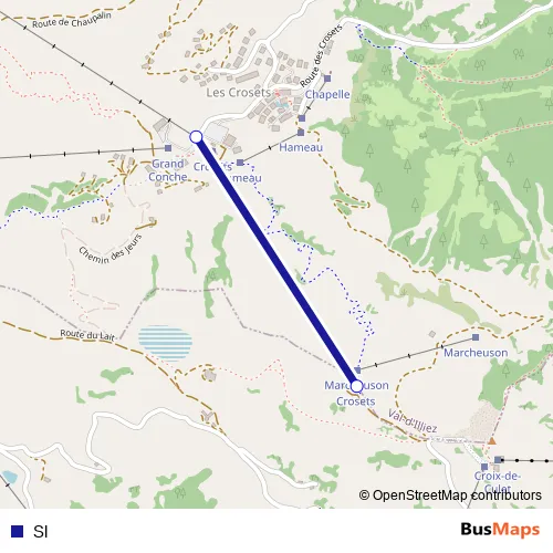 The first stop of the Sl cable-car route is Les Crosets and the last stop is Marcheusson. Sl is operational during tous les jours.