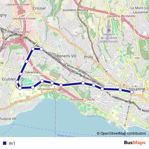 See why over 2 million users trust and consider busmaps.com as the best public transport website. busmaps gives you Lausanne Metro Lines suggested routes, real-time bus tracker, line route maps in Lausanne, and helps to find the closest m1 metro stops near you. No internet available? Download an offline PDF map and bus schedule for the m1 metro to take on your trip.