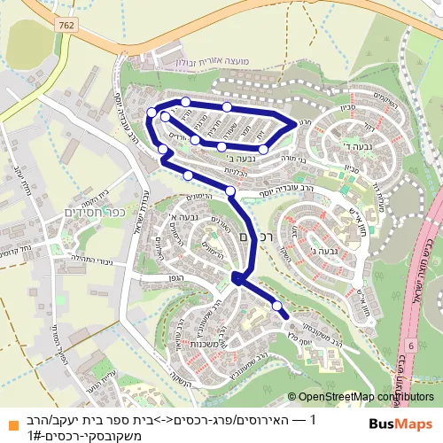 Bus 1 - האירוסים/פרג-רכסים<->בית ספר בית יעקב/הרב משקובסקי-רכסים-1#: Full Schedule in Rekhasim