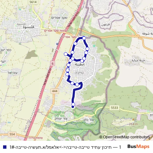 See why over 2 million users trust and consider busmaps.com as the best public transport website. busmaps gives you Et Taiyiba Buses suggested routes, real-time bus tracker, line route maps in Et Taiyiba, and helps to find the closest 1 bus stops near you. No internet available? Download an offline PDF map and bus schedule for the 1 bus to take on your trip.