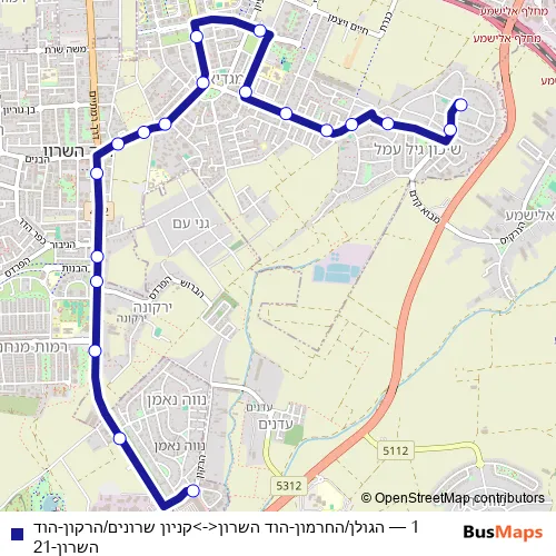 מטרופולין 1 הגולן/החרמון-הוד השרון<->קניון שרונים/הרקון-הוד השרון-21 Bus
