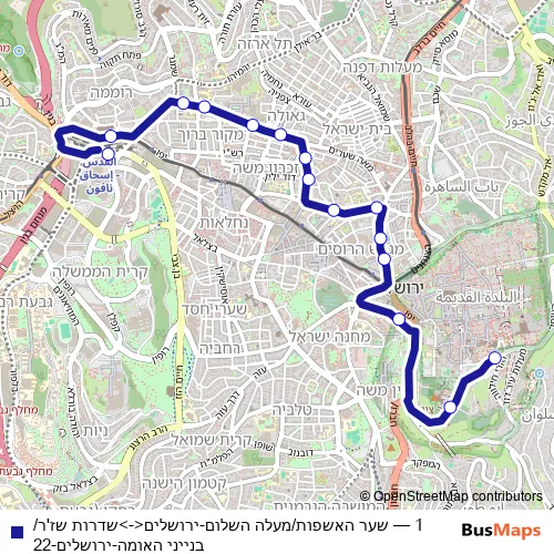 Bus 1 - שער האשפות/מעלה השלום-ירושלים<->שדרות שז'ר/בנייני האומה-ירושלים-22: Full Schedule in Jerusalem