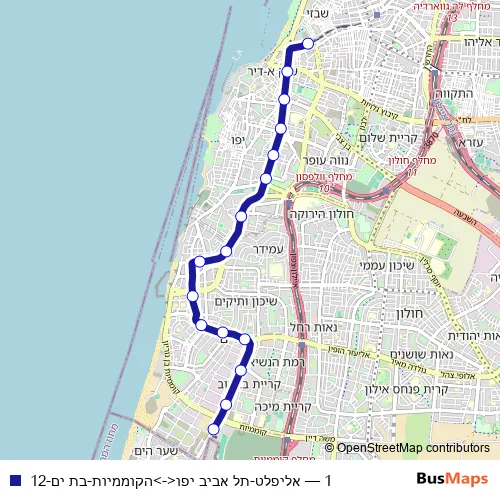 Click here to view the nearest 1 - אליפלט-תל אביב יפו<->הקוממיות-בת ים-12 tram stop.
