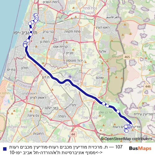 Bus 107 - ת. מרכזית מודיעין מכבים רעות-מודיעין מכבים רעות<->מסוף אוניברסיטת ת'א/הורדה-תל אביב יפו-10: Full Schedule in Tel Aviv