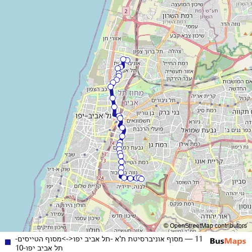 Bus 11 - מסוף אוניברסיטת ת'א -תל אביב יפו<->מסוף הטייסים-תל אביב יפו-10 Schedule in Tel Aviv