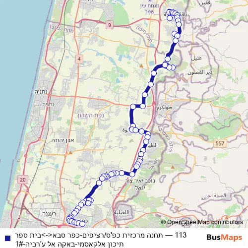 113 (תחנה מרכזית כפ'ס/רציפים-כפר סבא<->בית ספר תיכון אלקאסמי-באקה אל ע'רביה-1#) Bus in Baqa el Gharbiya