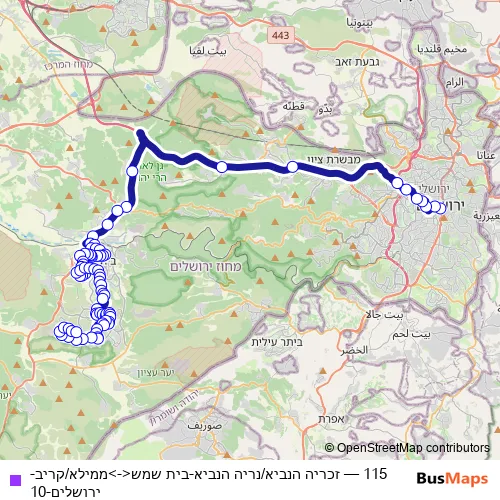 Services on the 115 - זכריה הנביא/נריה הנביא-בית שמש<->ממילא/קריב-ירושלים-10 bus stop at 05:00 on יום שישי, יום ראשון.