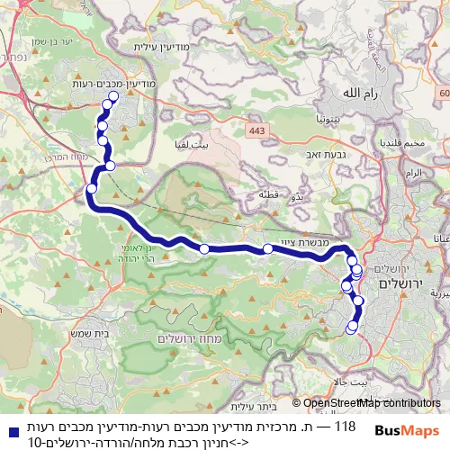 Bus 118 - ת. מרכזית מודיעין מכבים רעות-מודיעין מכבים רעות<->חניון רכבת מלחה/הורדה-ירושלים-10: Full Schedule in Jerusalem