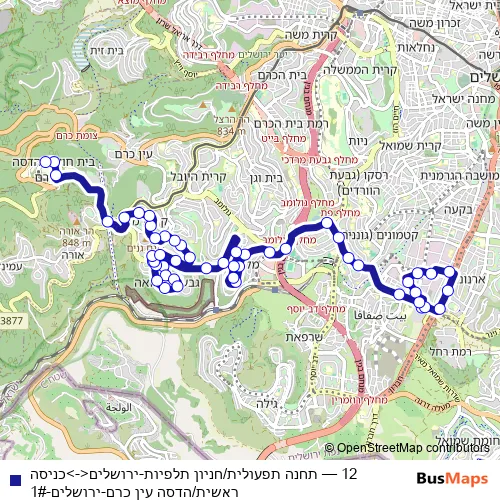 Bus 12 - תחנה תפעולית/חניון תלפיות-ירושלים<->כניסה ראשית/הדסה עין כרם-ירושלים-1#: Full Schedule in Jerusalem