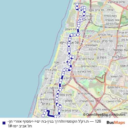 See why over 2 million users trust and consider busmaps.com as the best public transport website. busmaps gives you Tel Aviv Buses suggested routes, real-time bus tracker, line route maps in Tel Aviv, and helps to find the closest 126 bus stops near you. No internet available? Download an offline PDF map and bus schedule for the 126 bus to take on your trip.