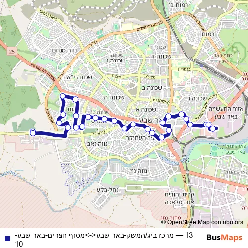 Click here to view the nearest 13 - מרכז ביג/המשק-באר שבע<->מסוף חצרים-באר שבע-10 bus stop.