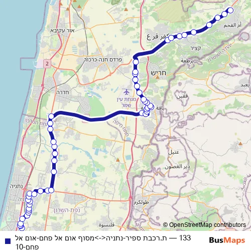 קווים 133 ת.רכבת ספיר-נתניה<->מסוף אום אל פחם-אום אל פחם-10 Bus