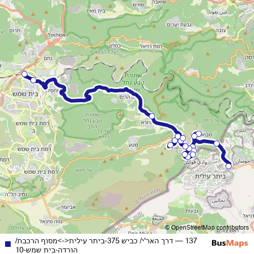 קווים 137 דרך האר'י/ כביש 375-ביתר עילית<->מסוף הרכבת/הורדה-בית שמש-10 Bus