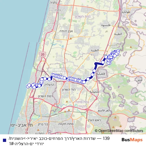 See why over 2 million users trust and consider busmaps.com as the best public transport website. busmaps gives you Tel Aviv Buses suggested routes, real-time bus tracker, line route maps in Tel Aviv, and helps to find the closest 139 bus stops near you. No internet available? Download an offline PDF map and bus schedule for the 139 bus to take on your trip.
