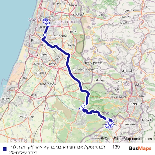 Bus 139 - ז'בוטינסקי/ אבו חצירא-בני ברק<->הר'ן/קדושת לוי-ביתר עילית-20 Schedule in Tel Aviv