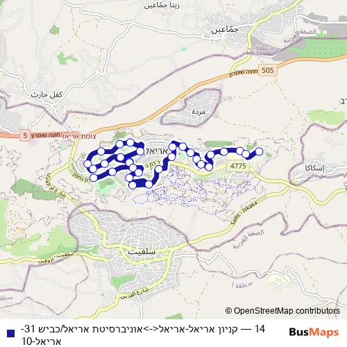 14 Bus - קניון אריאל-אריאל<->אוניברסיטת אריאל/כביש 31-אריאל-10