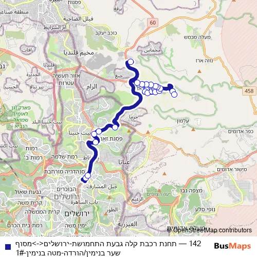 Bus 142 - תחנת רכבת קלה גבעת התחמושת-ירושלים<->מסוף שער בנימין/הורדה-מטה בנימין-1# Schedule in Jerusalem