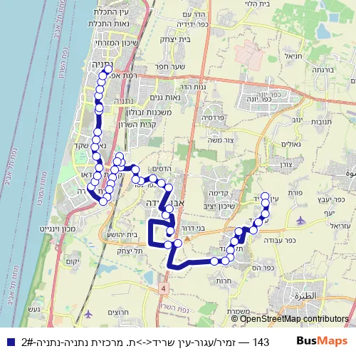 Bus 143 - זמיר/עגור-עין שריד<->ת. מרכזית נתניה-נתניה-2#: Full Schedule in Tel Aviv