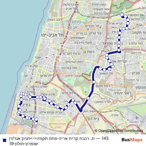 Bus 143 - ת. רכבת קרית אריה-פתח תקווה<->חניון אגד/דן שומרון-חולון-19: Full Schedule in Tel Aviv