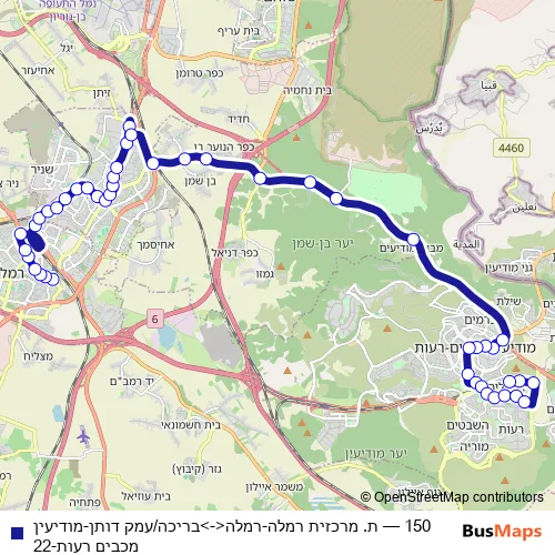 Bus 150 - ת. מרכזית רמלה-רמלה<->בריכה/עמק דותן-מודיעין מכבים רעות-22: Full Schedule in Ramla
