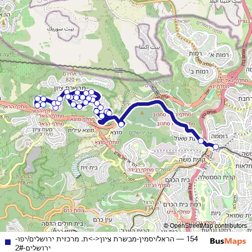 See why over 2 million users trust and consider busmaps.com as the best public transport website. busmaps gives you Jerusalem Buses suggested routes, real-time bus tracker, line route maps in Jerusalem, and helps to find the closest 154 bus stops near you. No internet available? Download an offline PDF map and bus schedule for the 154 bus to take on your trip.
