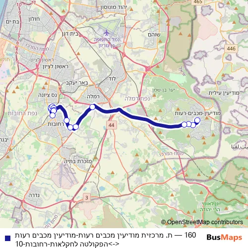 קווים 160 ת. מרכזית מודיעין מכבים רעות-מודיעין מכבים רעות<->הפקולטה לחקלאות-רחובות-10 Bus