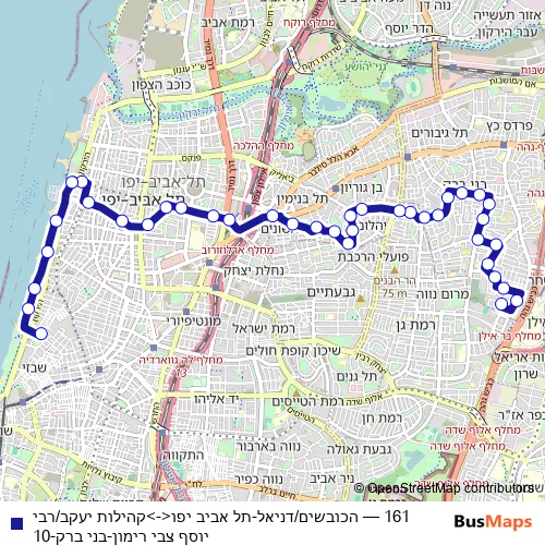 Bus 161 - הכובשים/דניאל-תל אביב יפו<->קהילות יעקב/רבי יוסף צבי רימון-בני ברק-10 Schedule in Tel Aviv