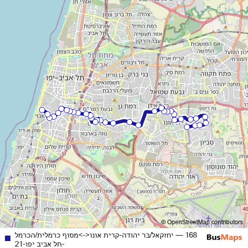 Bus 168 - יחזקאל/בר יהודה-קרית אונו<->מסוף כרמלית/הכרמל-תל אביב יפו-21 Schedule in Tel Aviv