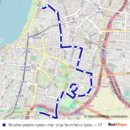 Bus 17 - מסוף כרמלית-תל אביב יפו<->מסוף וולפסון-חולון-10 Schedule in Tel Aviv