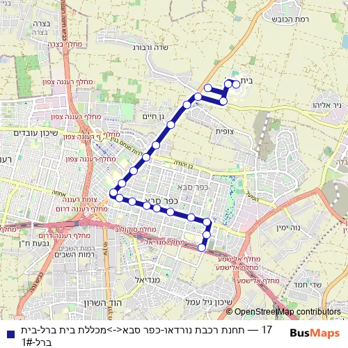 17 Bus - תחנת רכבת נורדאו-כפר סבא<->מכללת בית ברל-בית ברל-1#