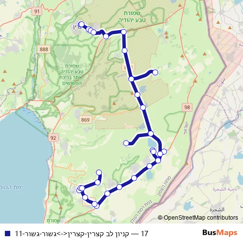 Click here to view the nearest 17 - קניון לב קצרין-קצרין<->גשור-גשור-11 bus stop.