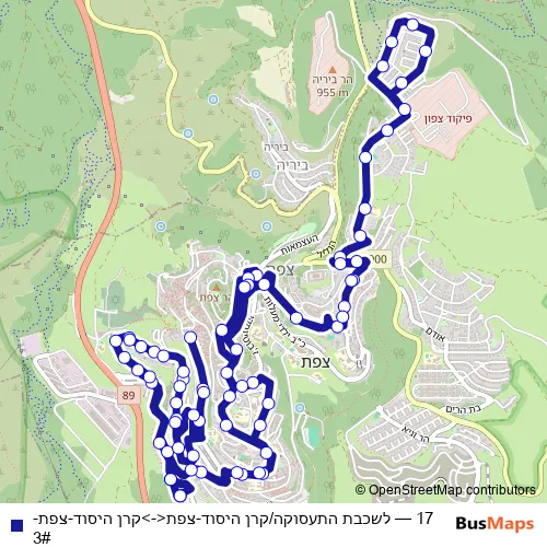 Services on the 17 - לשכבת התעסוקה/קרן היסוד-צפת<->קרן היסוד-צפת-3# bus stop at 23:55 on יום שני, יום שלישי, יום רביעי, יום חמישי, יום שישי, יום שבת, יום ראשון.