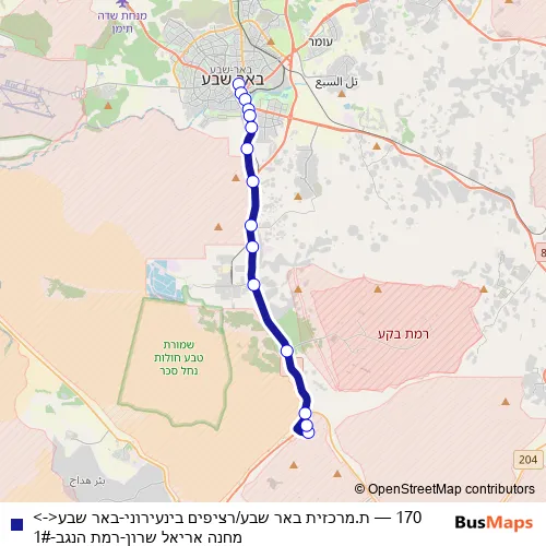 Click here to view the nearest 170 - ת.מרכזית באר שבע/רציפים בינעירוני-באר שבע<->מחנה אריאל שרון-רמת הנגב-1# bus stop.