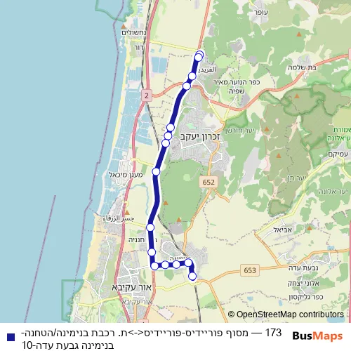 Click here to view the nearest 173 - מסוף פוריידיס-פוריידיס<->ת. רכבת בנימינה/הטחנה-בנימינה גבעת עדה-10 bus stop.