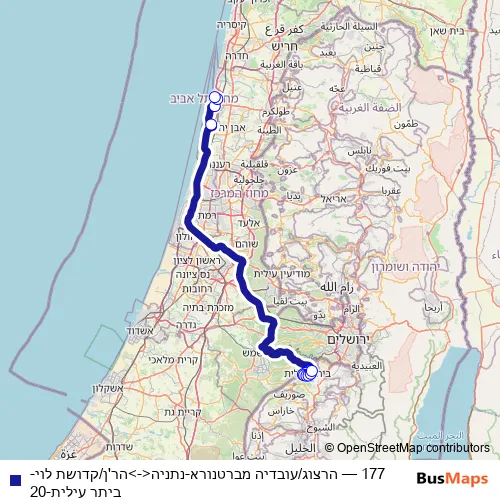 Bus 177 - הרצוג/עובדיה מברטנורא-נתניה<->הר'ן/קדושת לוי-ביתר עילית-20: Full Schedule in Jerusalem