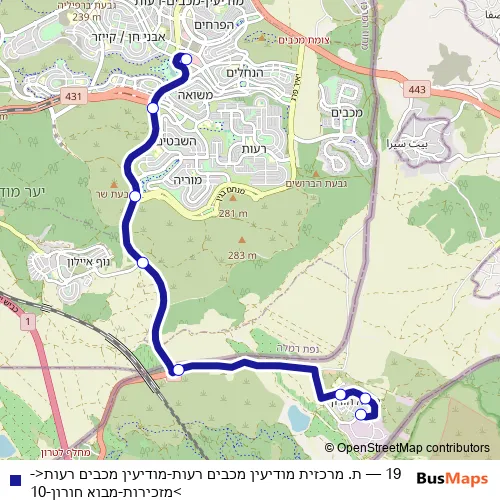 Click here to view the nearest 19 - ת. מרכזית מודיעין מכבים רעות-מודיעין מכבים רעות<->מזכירות-מבוא חורון-10 bus stop.