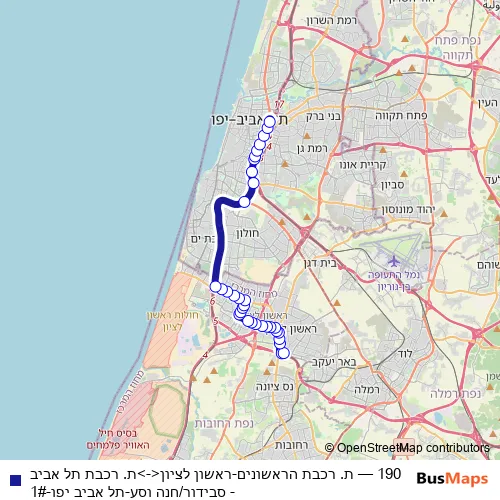 Click here to view the nearest 190 - ת. רכבת הראשונים-ראשון לציון<->ת. רכבת תל אביב - סבידור/חנה וסע-תל אביב יפו-1# bus stop.