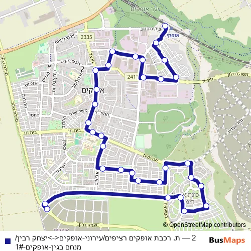 Click here to view the nearest 2 - ת. רכבת אופקים רציפים/עירוני-אופקים<->יצחק רבין/מנחם בגין-אופקים-1# bus stop.