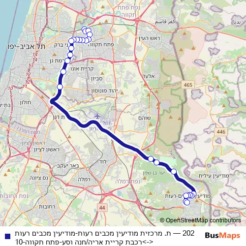 Bus 202 - ת. מרכזית מודיעין מכבים רעות-מודיעין מכבים רעות<->רכבת קריית אריה/חנה וסע-פתח תקווה-10 in Tel Aviv: Stops & Timetable