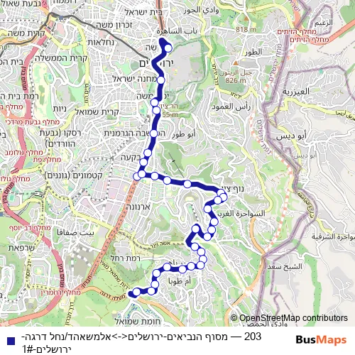 Click here to view the nearest 203 - מסוף הנביאים-ירושלים<->אלמשאהד/נחל דרגה-ירושלים-1# bus stop.