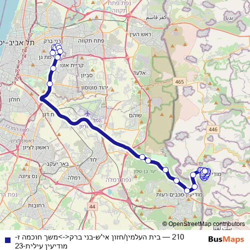 See why over 2 million users trust and consider busmaps.com as the best public transport website. busmaps gives you Modiin Ilit Buses suggested routes, real-time bus tracker, line route maps in Modiin Ilit, and helps to find the closest 210 bus stops near you. No internet available? Download an offline PDF map and bus schedule for the 210 bus to take on your trip.