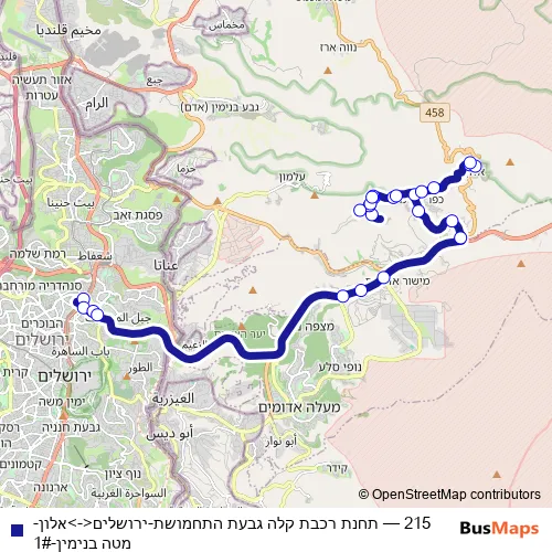 Bus 215 - תחנת רכבת קלה גבעת התחמושת-ירושלים<->אלון-מטה בנימין-1#: Full Schedule in Jerusalem
