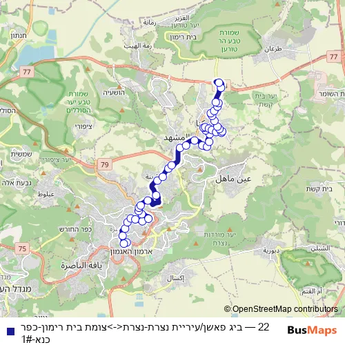 Click here to view the nearest 22 - ביג פאשן/עיריית נצרת-נצרת<->צומת בית רימון-כפר כנא-1# bus stop.