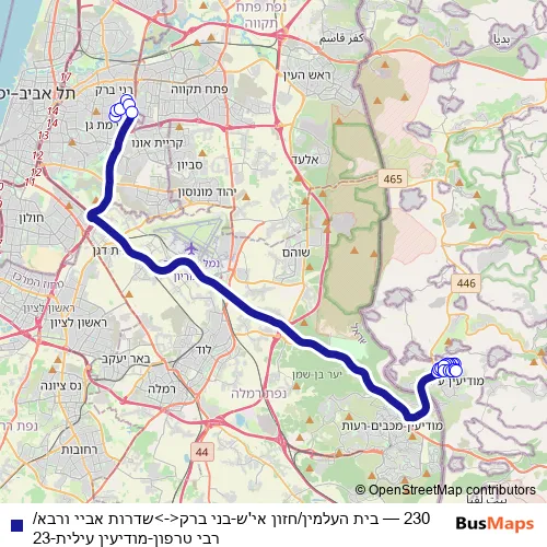 See why over 2 million users trust and consider busmaps.com as the best public transport website. busmaps gives you Modiin Ilit Buses suggested routes, real-time bus tracker, line route maps in Modiin Ilit, and helps to find the closest 230 bus stops near you. No internet available? Download an offline PDF map and bus schedule for the 230 bus to take on your trip.