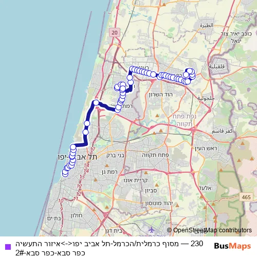 Bus 230 - מסוף כרמלית/הכרמל-תל אביב יפו<->איזור התעשיה כפר סבא-כפר סבא-2# Schedule in Tel Aviv