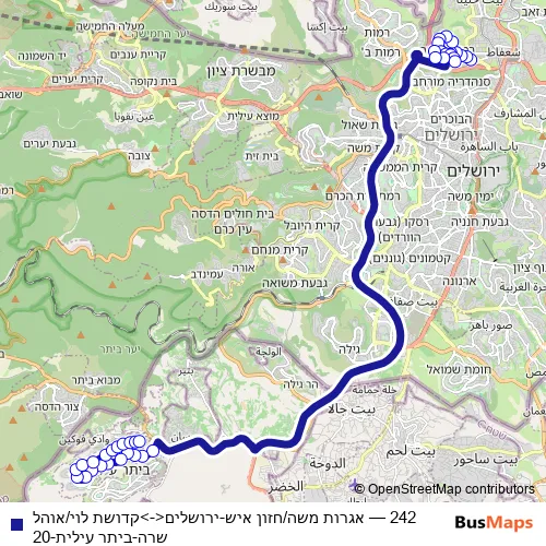Click here to view the nearest 242 - אגרות משה/חזון איש-ירושלים<->קדושת לוי/אוהל שרה-ביתר עילית-20 bus stop.