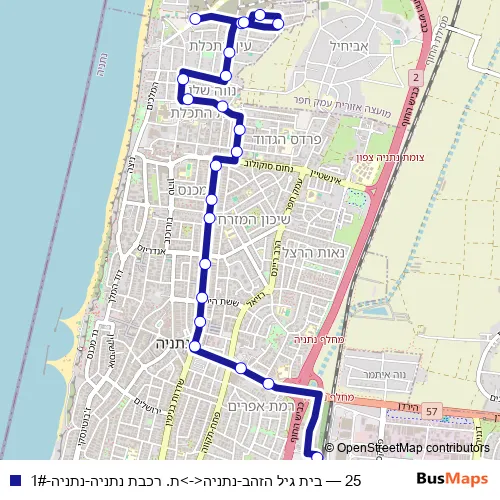 See why over 2 million users trust and consider busmaps.com as the best public transport website. busmaps gives you Netanya Buses suggested routes, real-time bus tracker, line route maps in Netanya, and helps to find the closest 25 bus stops near you. No internet available? Download an offline PDF map and bus schedule for the 25 bus to take on your trip.