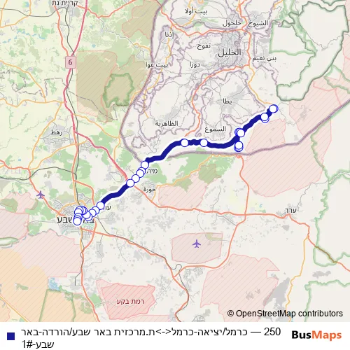 Bus 250 - כרמל/יציאה-כרמל<->ת.מרכזית באר שבע/הורדה-באר שבע-1#: Full Schedule in Beersheba