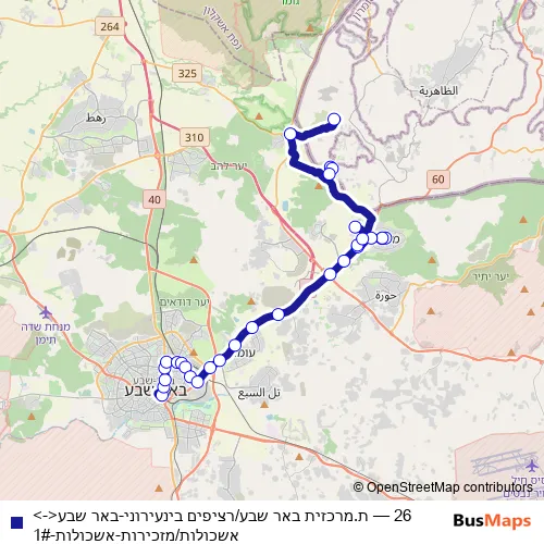 See why over 2 million users trust and consider busmaps.com as the best public transport website. busmaps gives you Beersheba Buses suggested routes, real-time bus tracker, line route maps in Beersheba, and helps to find the closest 26 bus stops near you. No internet available? Download an offline PDF map and bus schedule for the 26 bus to take on your trip.
